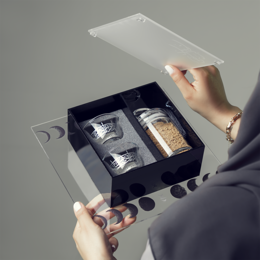 في تغليف رمضاني مع عبارة (رمضان مبارك) على الغطاء